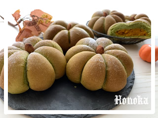 ほうれん草の生地と優しい甘さのカボチャ餡で