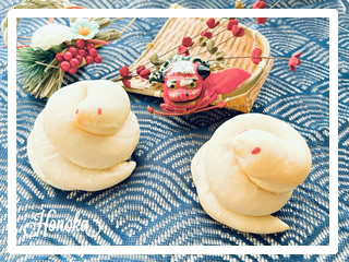 包み込む 縁起のいい白へびパンです(´艸`*)